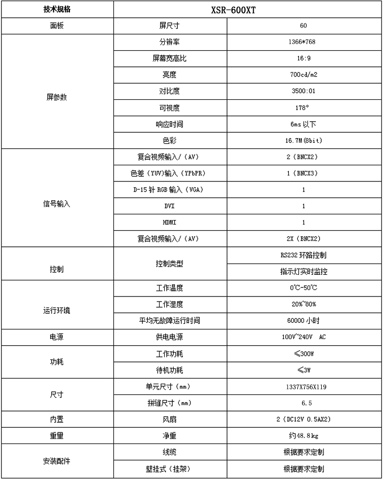 新視銳60寸超窄邊6.5mm拼縫液晶拼接單元產品參數: